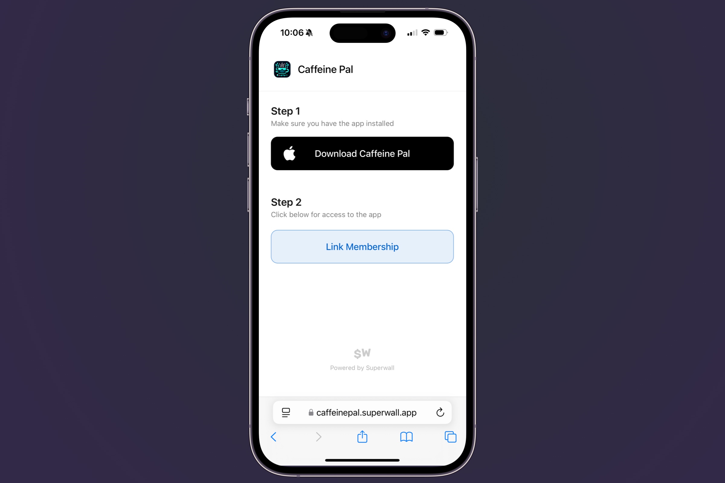 Once the purchase goes through successfully, they'll be taken to a page where Superwall prompts them to: